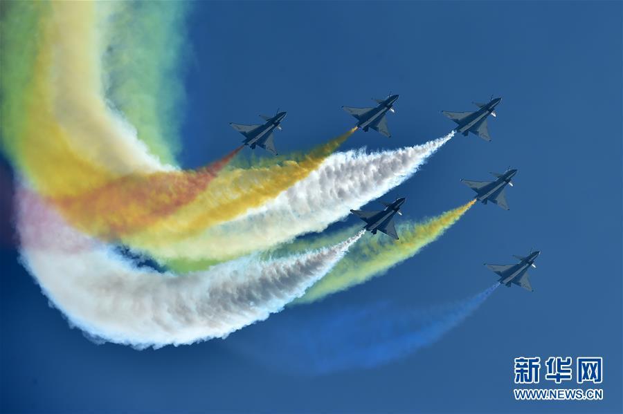 11月6日,中國空軍八一飛行表演隊(duì)在航展現(xiàn)場(chǎng)進(jìn)行飛行表演。當(dāng)日,第十二屆中國國際航空航天博覽會(huì)在珠海開幕。 新華社記者鄧華攝