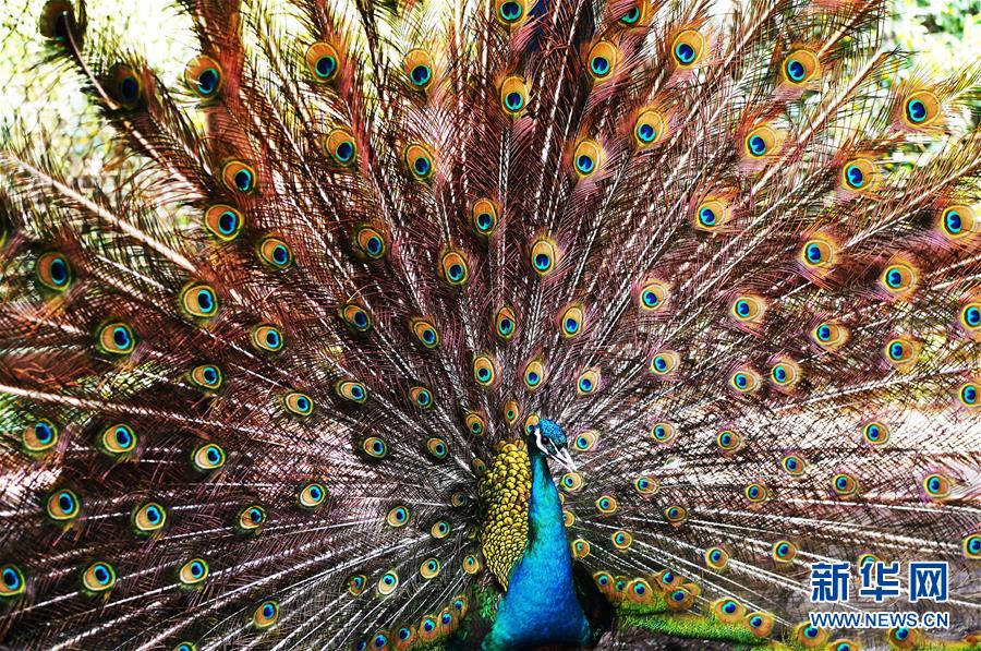 5月16日,在重慶市銅梁區(qū)永嘉鎮(zhèn)高龍村藍(lán)孔雀養(yǎng)殖場(chǎng)內(nèi),一只藍(lán)孔雀開(kāi)屏。 新華社記者 王全超 攝