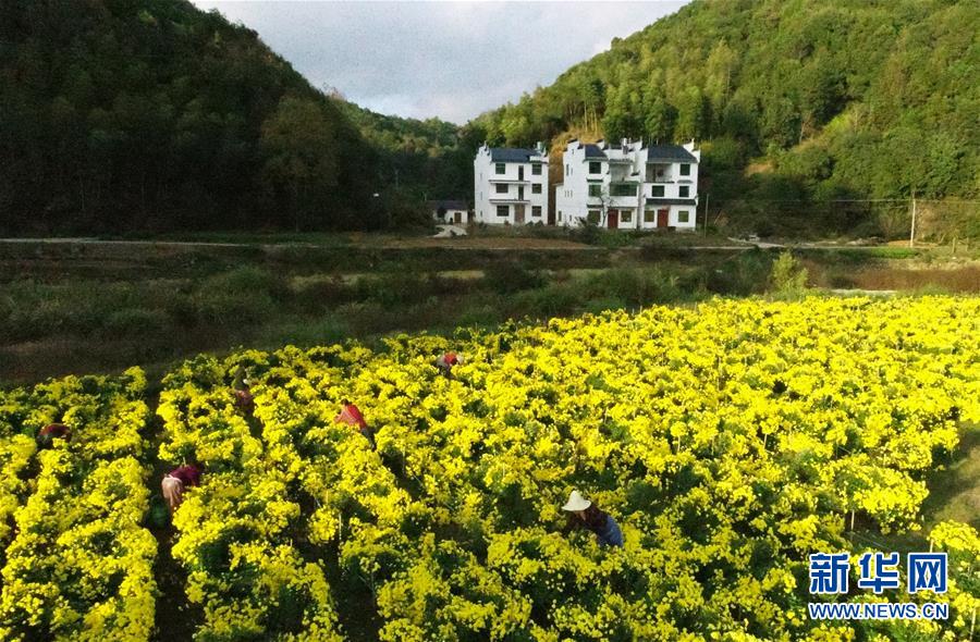 11月8日,婺源縣思口鎮(zhèn)農(nóng)戶在采摘皇菊。