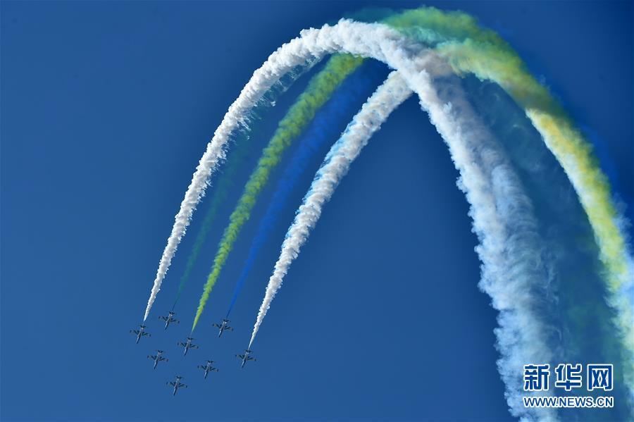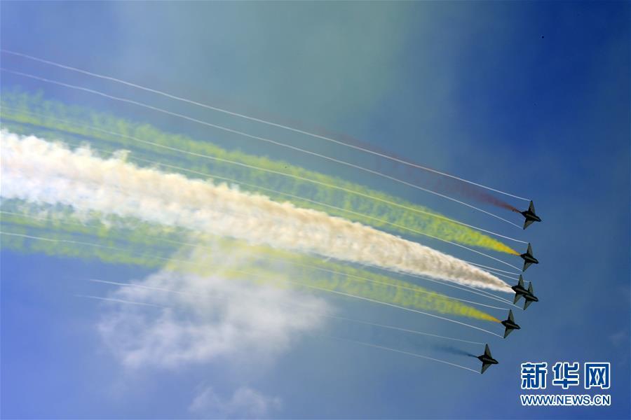11月6日,中國(guó)空軍八一飛行表演隊(duì)在航展現(xiàn)場(chǎng)進(jìn)行飛行表演。當(dāng)日,第十二屆中國(guó)國(guó)際航空航天博覽會(huì)在珠海開(kāi)幕。新華社記者鄧華攝