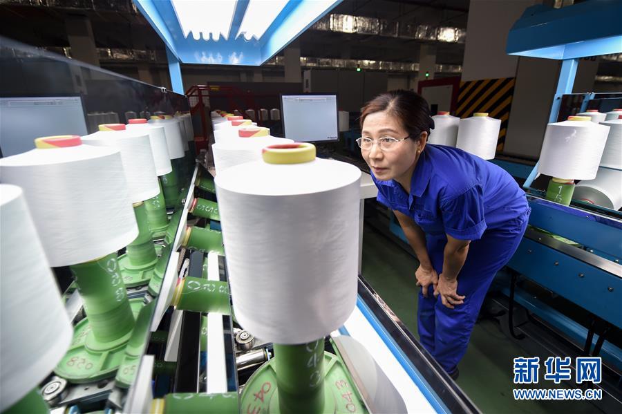 工作人員在位于蘇州市吳江區(qū)的恒力集團化纖板塊自動分級包裝線進行外檢作業(yè)(10月31日攝)。 新華社記者 李博 攝