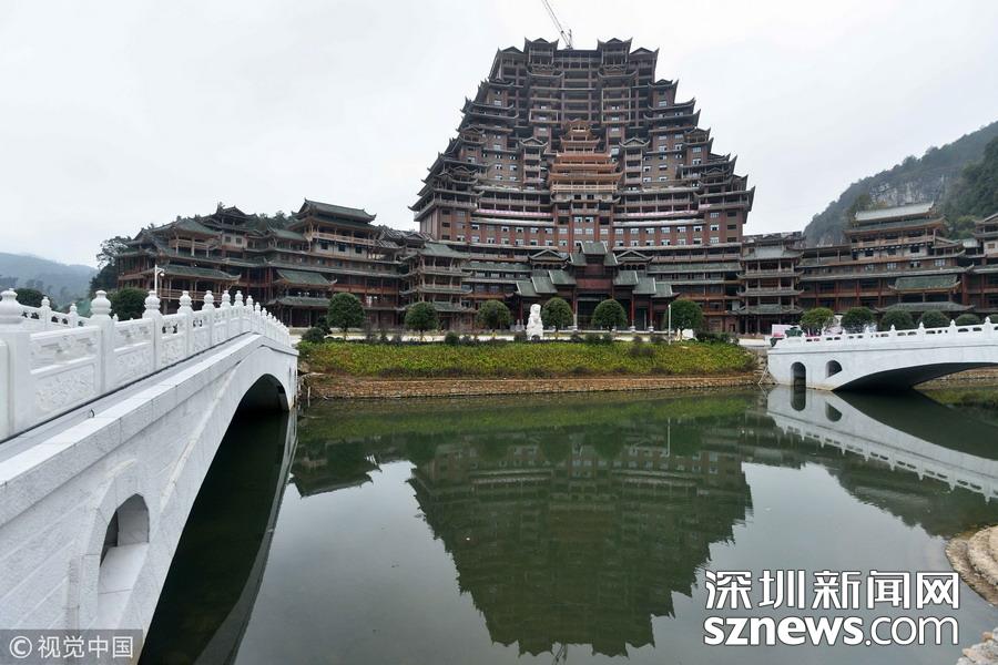 深圳新網(wǎng)網(wǎng)訊 始建于2016年9月的貴州省獨(dú)山縣水司樓已進(jìn)入工程收尾階段。雄偉壯麗造型別致的水司樓,是集會(huì)展博覽、酒店住宿、游覽觀光等于一體的大型綜合體。除具有水族特色元素外,該建筑還融合了苗族、布依族特色,是獨(dú)山縣凈心谷景區(qū)最具標(biāo)志性的宏大建筑。該樓占地面積5900平方米,總建筑面積60000平方米,樓高99.9米,共24層,是世界上最高大最大最壯觀的水族建筑,被稱為“天下第一水司樓”。 水司樓是按照水族依山畔水而居的傳統(tǒng)習(xí)俗和建筑特征修建,是水族人民的文化符號(hào)和智慧的象征,背靠?jī)粜暮庸壬郊梗曰⌒蔚钠矫娌季帜J?,如同張開懷抱的巨人,緊擁美麗的姻脂河灣,設(shè)計(jì)巧妙,工藝精巧。