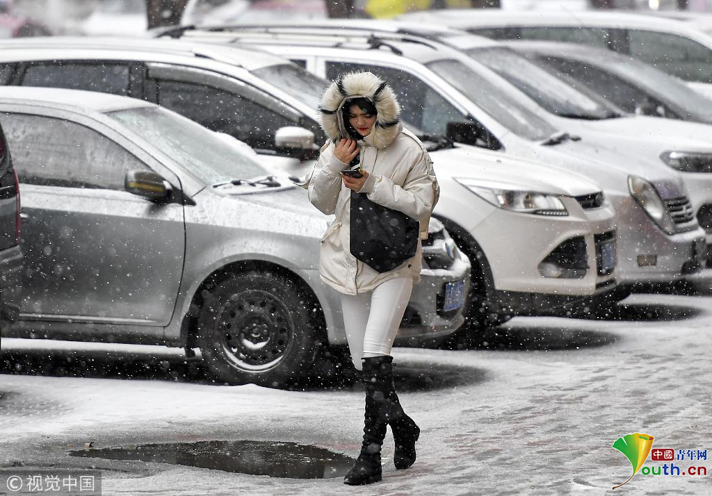 烏魯木齊迎雨雪降溫天氣 風(fēng)雪中民眾 ...