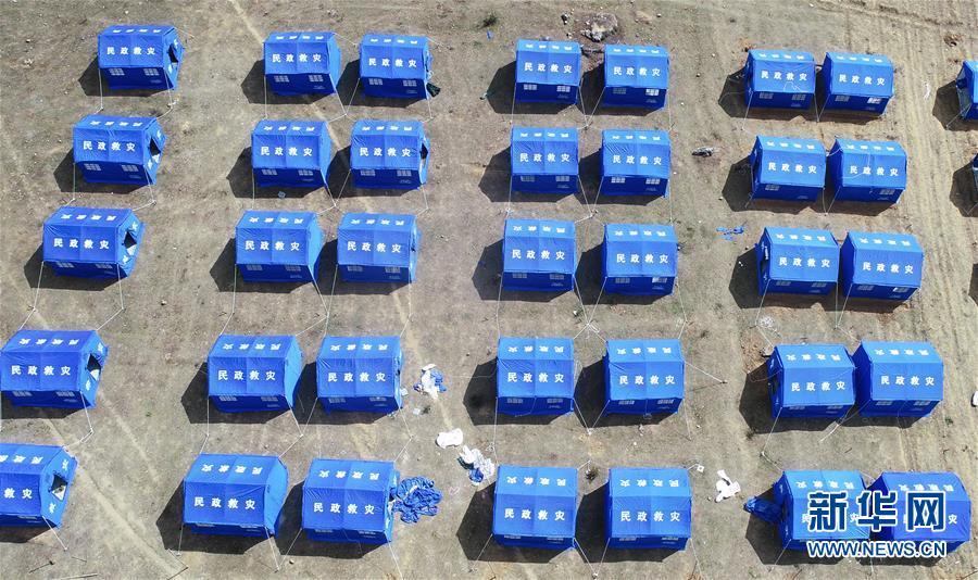 這是西藏昌都市江達(dá)縣波羅鄉(xiāng)一臨時過渡安置點(10月14日無人機(jī)拍攝)。