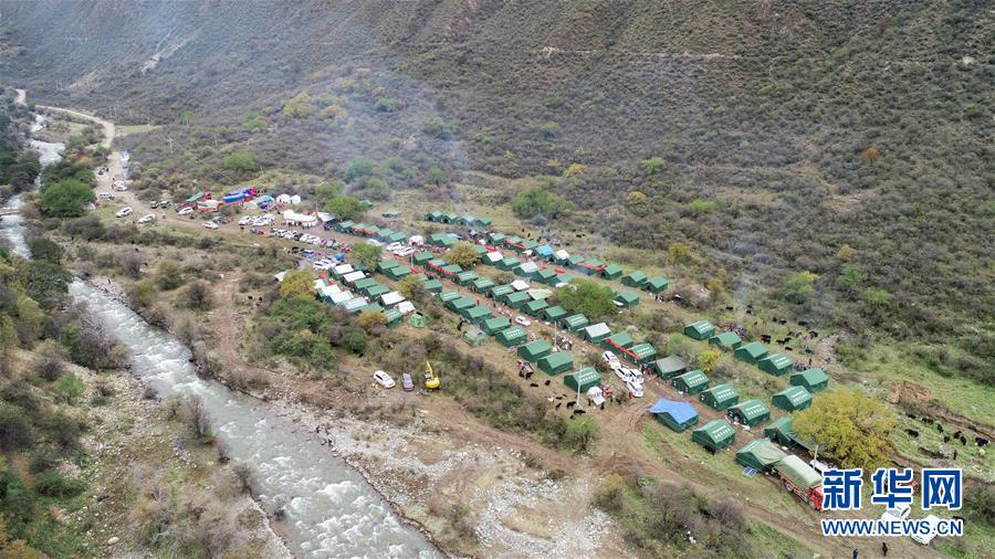 10月19日,救援人員在米林縣派鎮(zhèn)尼定村搭建安置點。 記者從西藏自治區(qū)林芝加拉村雅魯藏布江堰塞湖災(zāi)情應(yīng)急搶險工作第二場新聞發(fā)布會上獲悉,19日13時30分,雅魯藏布江米林縣堰塞體上游水位超過堰塞體,開始自然過流,上游水位正在緩慢下降。目前,各項搶險救援工作正在有序開展。 新華社記者 覺果 攝