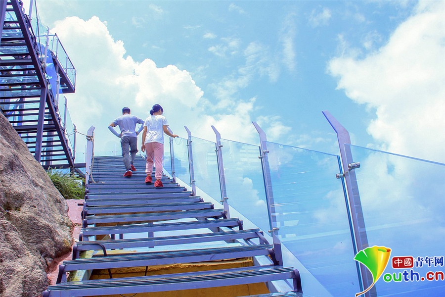 在去年十一前,金子山建成了廣東海拔最高的玻璃廊橋與觀景平臺,兩大玻璃產(chǎn)品均建在海拔1417米的最高峰上。今年十一前,又建成了玻璃天梯。