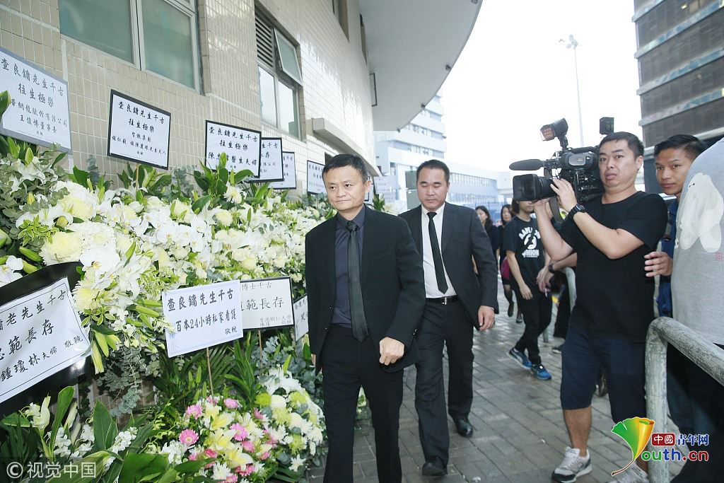 香港,已故著名武俠小說家金庸(查良鏞)香港設(shè)靈。圖為馬云現(xiàn)身致哀。圖片作者:null