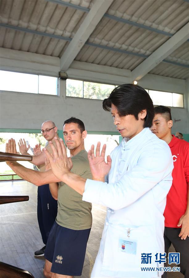 11月13日,在馬耳他首都瓦萊塔,鄭祖杰(前)向馬耳他士兵展示詠春拳。 當(dāng)日,中國(guó)國(guó)家級(jí)非物質(zhì)文化遺產(chǎn)詠春拳代表性傳承人鄭祖杰走進(jìn)馬耳他武裝部隊(duì),向官兵展示詠春拳。這一活動(dòng)是馬耳他中國(guó)文化中心與馬耳他武術(shù)協(xié)會(huì)合辦的詠春拳系列展示活動(dòng)之一。 新華社記者 袁韻 攝