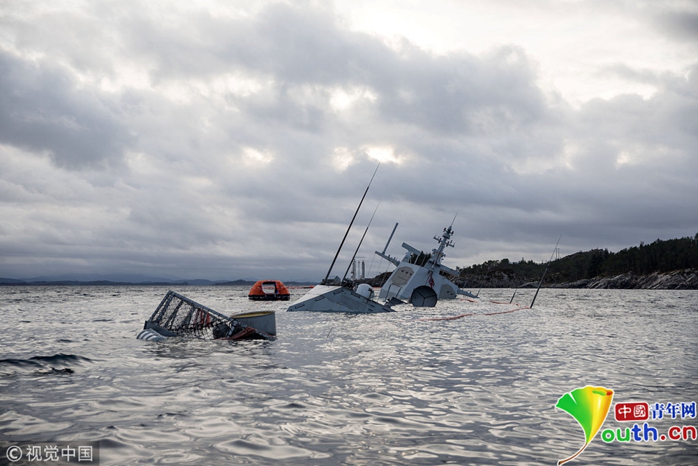 挪威:被撞翻的海軍護(hù)衛(wèi)艦打撈出水
