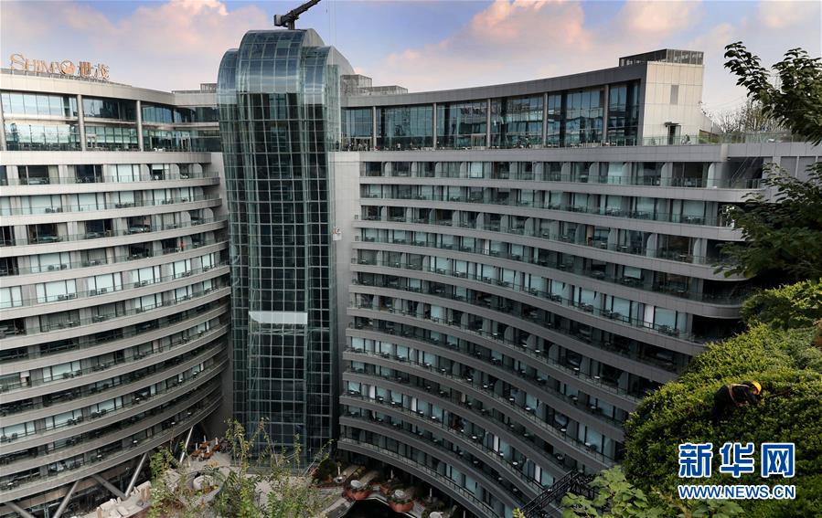 一條人造瀑布從酒店主體建筑旁的礦坑頂部流下(11月13日攝)。 位于上海松江的世茂洲際酒店11月15日正式開門營業(yè)。這家在一個廢棄采石礦坑內(nèi)建成的酒店成為上海又一新景。 新華社記者 方喆 攝