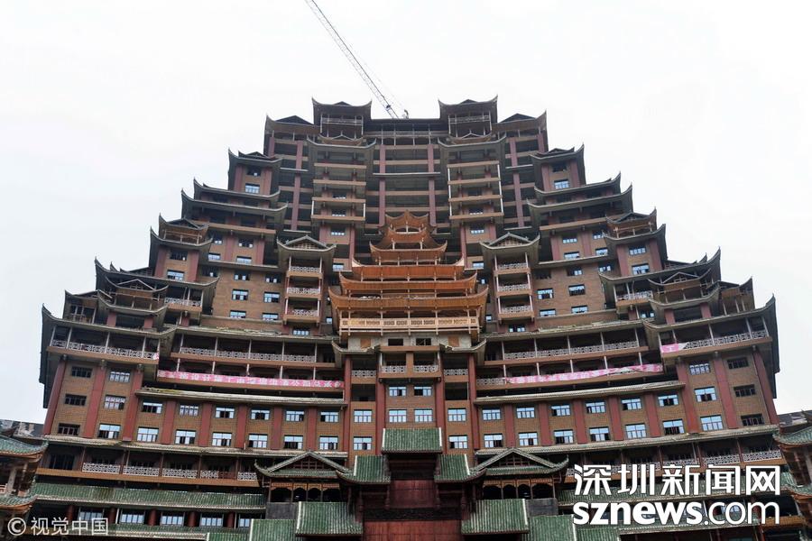 深圳新網(wǎng)網(wǎng)訊 始建于2016年9月的貴州省獨山縣水司樓已進(jìn)入工程收尾階段。雄偉壯麗造型別致的水司樓,是集會展博覽、酒店住宿、游覽觀光等于一體的大型綜合體。除具有水族特色元素外,該建筑還融合了苗族、布依族特色,是獨山縣凈心谷景區(qū)最具標(biāo)志性的宏大建筑。該樓占地面積5900平方米,總建筑面積60000平方米,樓高99.9米,共24層,是世界上最高大最大最壯觀的水族建筑,被稱為“天下第一水司樓”。 水司樓是按照水族依山畔水而居的傳統(tǒng)習(xí)俗和建筑特征修建,是水族人民的文化符號和智慧的象征,背靠凈心河谷山脊,以弧形的平面布局模式,如同張開懷抱的巨人,緊擁美麗的姻脂河灣,設(shè)計巧妙,工藝精巧。