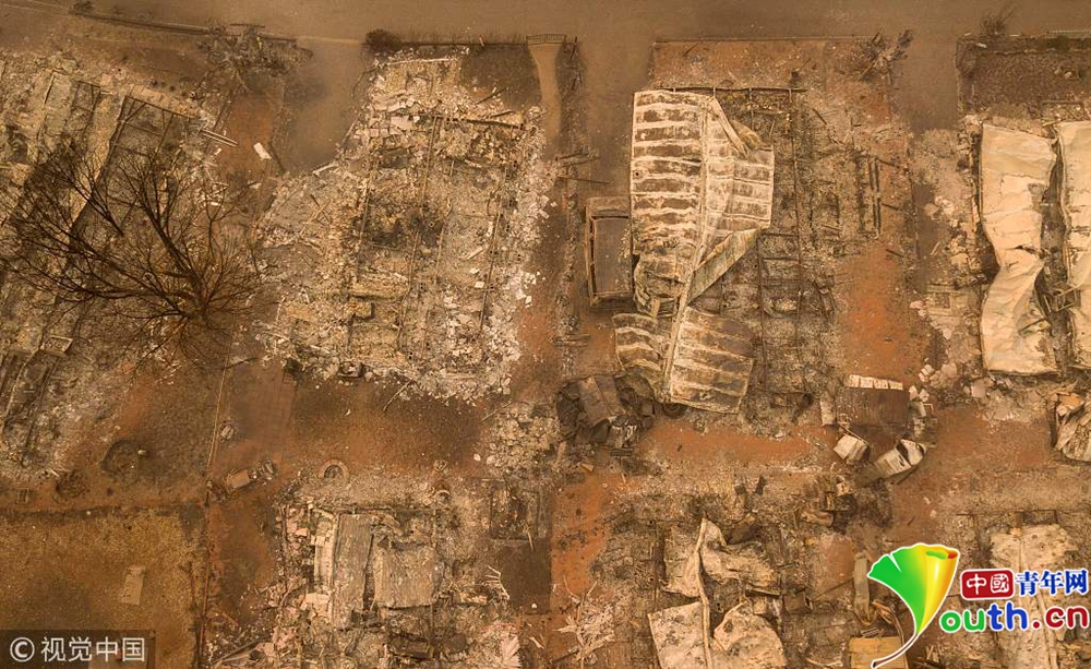 天堂變“地獄” 航拍加州山火肆虐社區(qū)似墓地