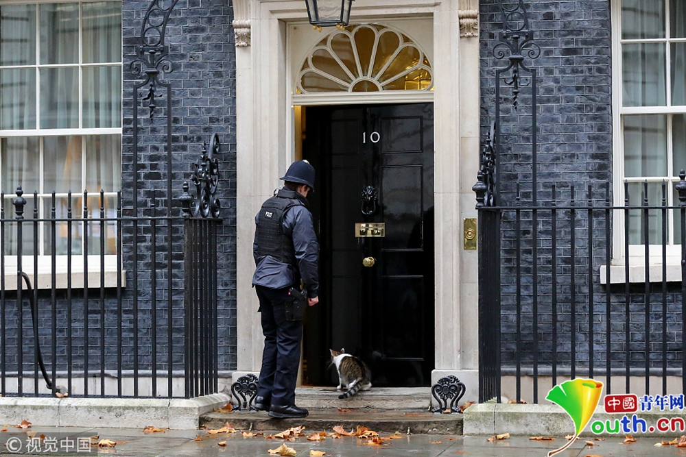 后者顯然立馬接收到了“首席貓”的眼神示意,他快速走上前來(lái),替拉里敲開(kāi)門,助它重返溫暖的室內(nèi)。