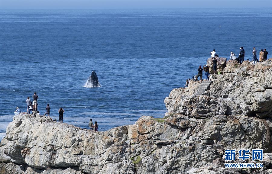 9月30日,在南非赫曼紐斯小鎮(zhèn)附近海面上,一頭南露脊鯨躍出海面。9月29日,位于開普敦以東約115公里的赫曼紐斯小鎮(zhèn)迎來2018年的鯨魚節(jié),來自世界各地的游客可乘船出海觀鯨,也可在岸邊等待鯨魚的到來。新華社記者陳誠攝