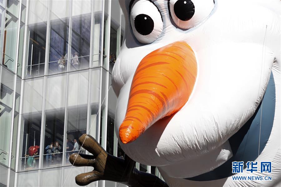 11月22日,在美國紐約感恩節(jié)大游行上,小精靈造型氣球行進在曼哈頓街頭。