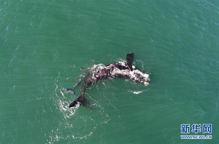 9月30日,在南非赫曼紐斯小鎮(zhèn)附近海面上,2頭南露脊鯨在海岸邊暢游。9月29日,位于開(kāi)普敦以東約115公里的赫曼紐斯小鎮(zhèn)迎來(lái)2018年的鯨魚節(jié),來(lái)自世界各地的游客可乘船出海觀鯨,也可在岸邊等待鯨魚的到來(lái)。新華社記者陳誠(chéng)攝