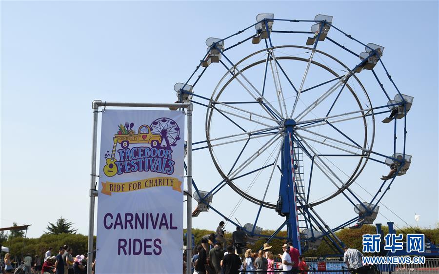 8月11日,在美國舊金山灣區(qū),人們在“臉書節(jié)”游戲區(qū)乘坐摩天輪。當(dāng)日,舊金山灣區(qū)臉書園區(qū)舉行“臉書節(jié)”,人們在活動(dòng)中欣賞文藝表演,品嘗美食,乘坐游樂設(shè)施等,活動(dòng)收入將捐給慈善團(tuán)體。新華社記者吳曉凌攝