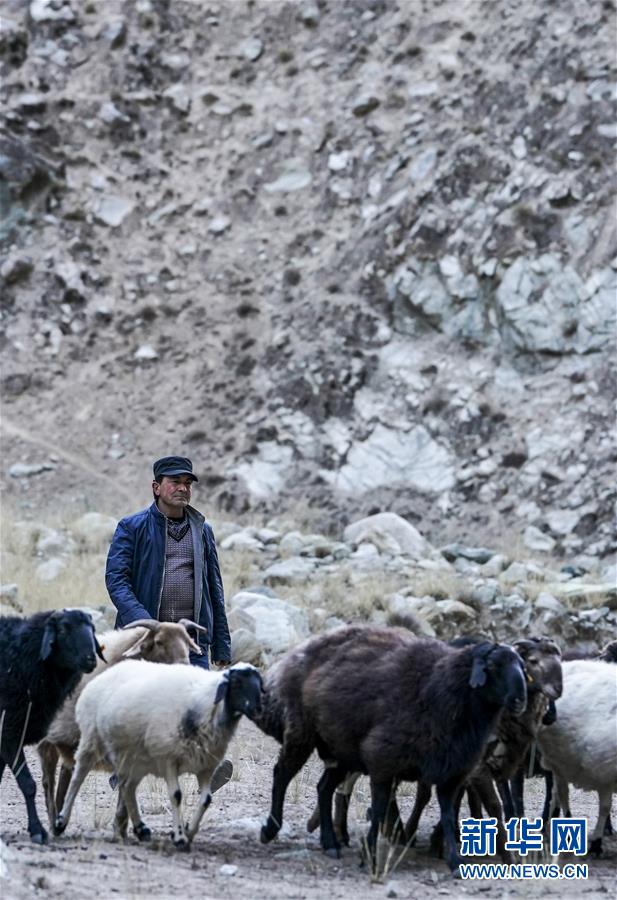 在塔什庫爾干塔吉克自治縣大同鄉(xiāng)阿克托尕欄桿村一組,都熱·加爾曼趕著羊群回家(11月16日攝)。新華社記者胡虎虎攝
