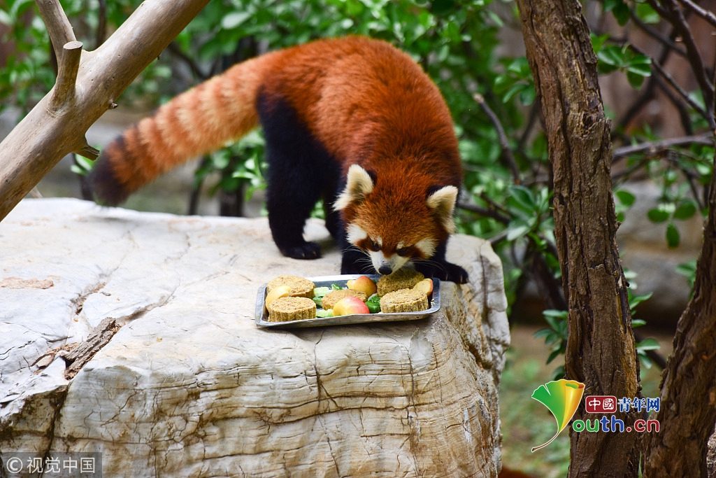 2016年9月10日,重慶,中秋節(jié)即將來(lái)臨,飼養(yǎng)員們給一些動(dòng)物也發(fā)放了“月餅”,根據(jù)不同的動(dòng)物選擇不同的食材。