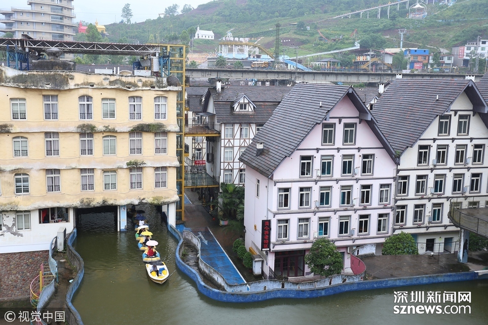 2018年6月20日,重慶涪陵,紅酒小鎮(zhèn)人工運(yùn)河全長(zhǎng)近5公里,2009年開建,先期依梨香溪岸線而建,后期隨著景區(qū)的發(fā)展,運(yùn)河逐漸拓展為高架橋的“空中運(yùn)河”,穿樓而過的“室內(nèi)運(yùn)河”,穿水上樂園而過的“水中運(yùn)河”。為確保一個(gè)水平面,運(yùn)河見房穿洞,過路搭橋,游客乘坐觀光船或蕩舟其中成為一道獨(dú)特的風(fēng)景線。隨著8D魔幻重慶的不斷走紅,該景區(qū)的網(wǎng)紅運(yùn)河正受到游客的喜愛與“打卡”。