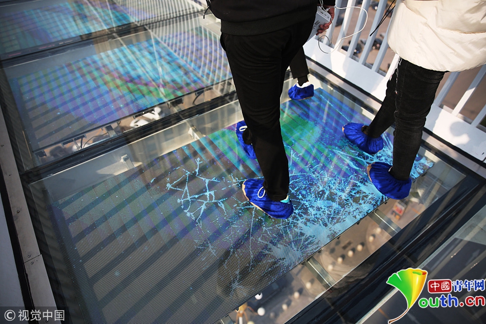 2018年11月28日,石家莊市區(qū)內(nèi)的一座玻璃吊橋在網(wǎng)絡(luò)上走紅,游客們置身于透明的玻璃吊橋上,望著地面川流不息的車(chē)輛,伴隨玻璃破裂的特效聲,不禁膽戰(zhàn)心驚。這座玻璃吊橋位于石家莊南二環(huán)附近,橋體橫跨塔通大街,長(zhǎng)100米,高30米,。橋面由52塊特質(zhì)玻璃構(gòu)成,其中4塊為特效玻璃,游客腳踩上去就會(huì)發(fā)出玻璃破裂的聲音。