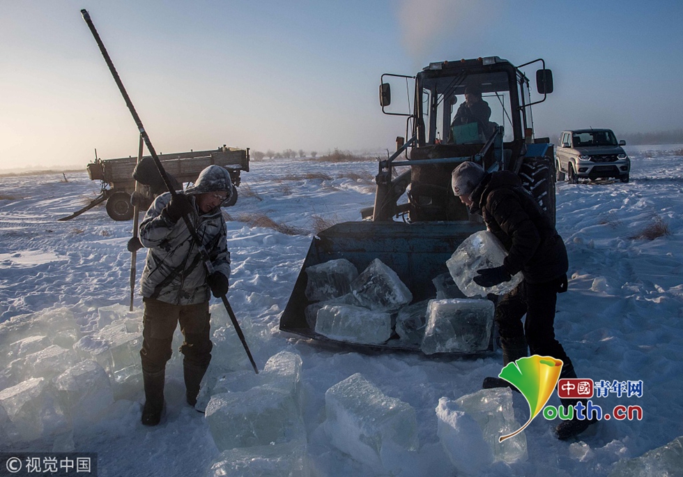 航拍中俄界湖興凱湖封凍 如同浪花被 ...