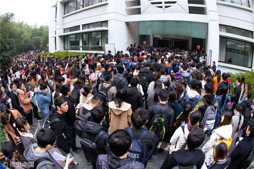 2018年12月2日,湖北武漢一公務(wù)員考點,密密麻麻的考生進向考場。當(dāng)日,2019年度中央機關(guān)及其直屬機構(gòu)公務(wù)員招考筆試開考。楚林/視覺中國