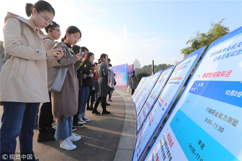 2018年12月2日,北京,參加2019年度中央機關(guān)及其直屬機構(gòu)公務(wù)員招考筆試的考生走入首都經(jīng)濟貿(mào)易大學(xué)考點準(zhǔn)備考試,步履匆匆。2019年度中央機關(guān)及其直屬機構(gòu)公務(wù)員招考筆試今日開考。本次國考計劃招錄1.45萬人,共有137.93萬人通過報名資格審查,平均競爭比達到95:1,為近5年來最高,最熱崗位的競爭超過4000:1。視覺中國