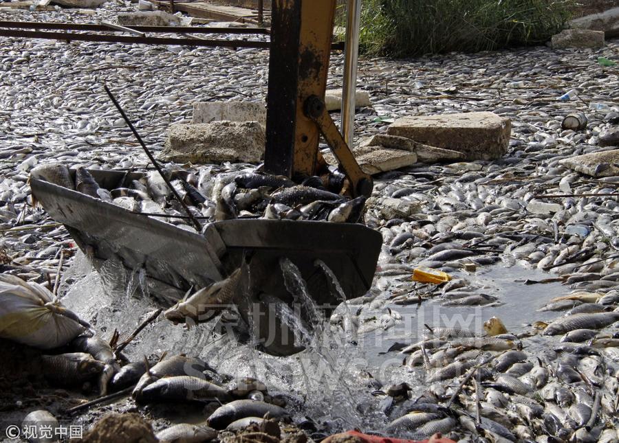 養(yǎng)魚戶們陷入數(shù)萬(wàn)條魚慘死的困境中,一些人猜測(cè)它們可能是被毒死的,為了避免造成更大的損失,瘋狂地把死魚從河中撈出來(lái)。漁民法拉吉說(shuō):“有人認(rèn)為這可能是一種疫病,也有人說(shuō)可能是化學(xué)有毒物質(zhì)導(dǎo)致的,我們都在等著政府的解決方案,還有人擔(dān)心這些水有問(wèn)題會(huì)對(duì)附近居民造成傷害?!?br>