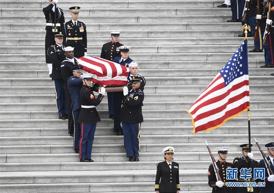 美國(guó)前總統(tǒng)老布什的遺體3日下午運(yùn)抵首都華盛頓,安放在國(guó)會(huì)大廈圓頂大廳,接受吊唁。