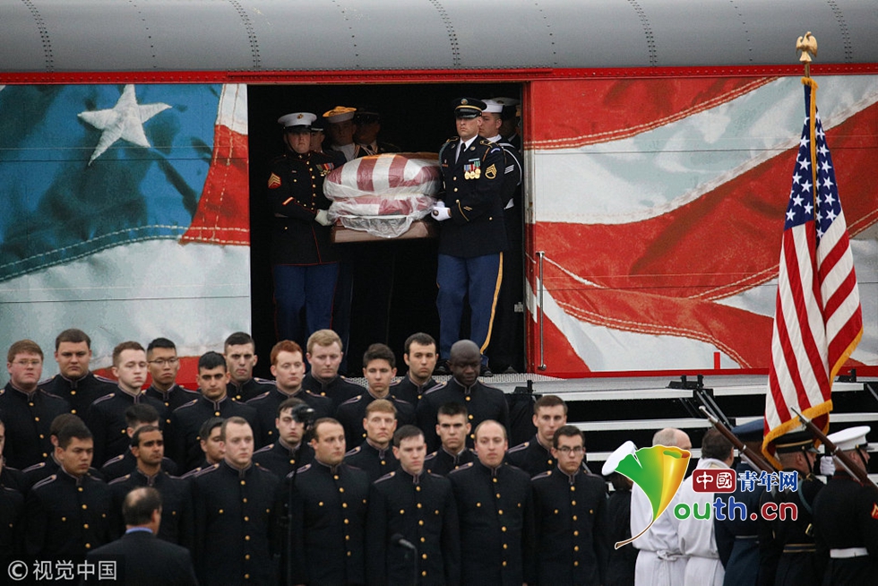 老布什靈柩下葬德州家族墓地 21架F18戰(zhàn)機(jī)編隊(duì)悼念