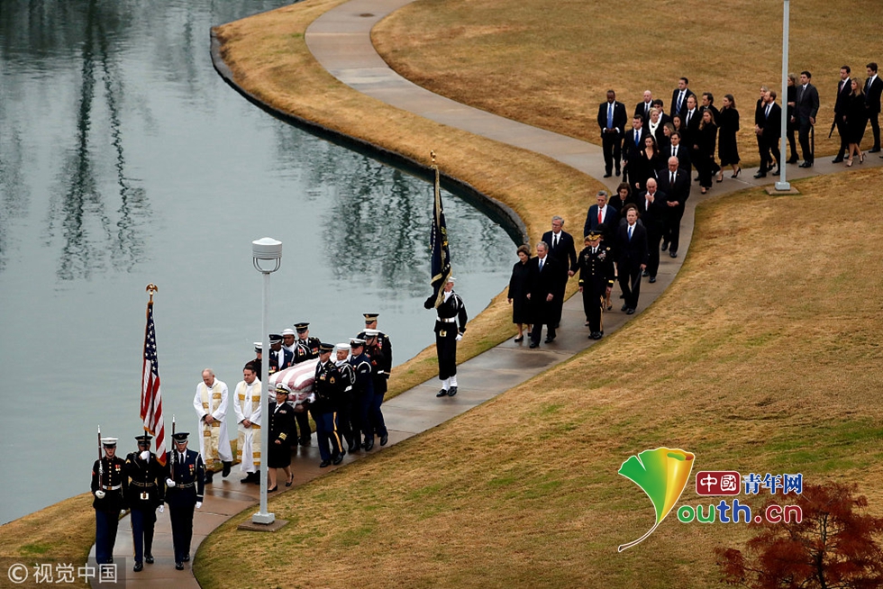 老布什靈柩下葬德州家族墓地 21架F18戰(zhàn)機(jī)編隊(duì)悼念