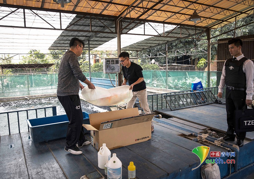中國青年網(wǎng)2018年12月12日訊 由于這條錦鯉價格昂貴,錦鯉的原主人——“長彥觀賞魚漁場”淘寶店主李長彥請安保一路護(hù)送錦鯉。負(fù)責(zé)護(hù)送的天尊安保小哥透露,之前曾護(hù)送過明星、政要,也護(hù)送過貴重物品,但這是第一次護(hù)送一條魚。