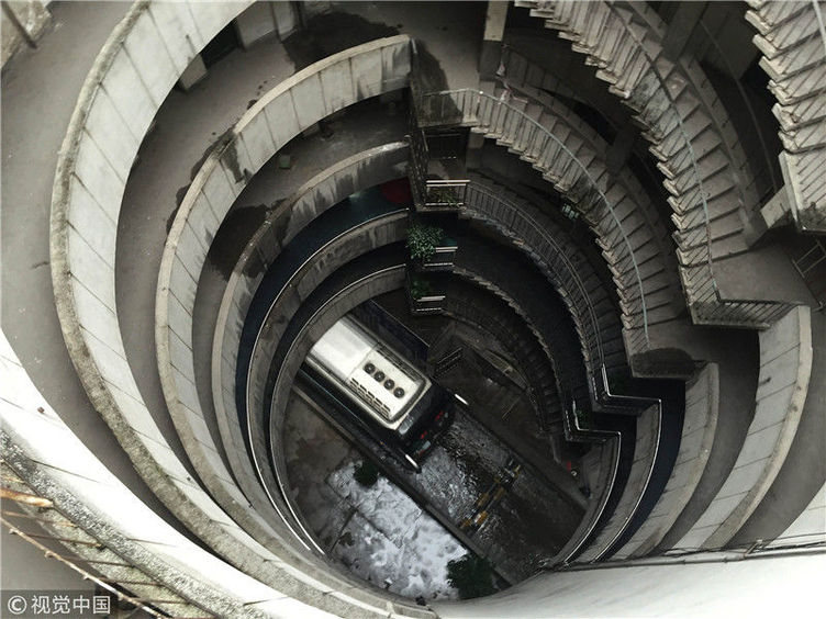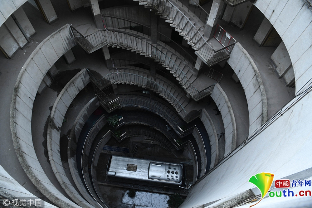 重慶洋人街景區(qū)內(nèi)的穿樓觀光索道吸引不少游客體驗(yàn)。據(jù)悉,跨度長1000米的觀光索道將隨著洋人街的拆遷而搬離。中新社記者陳超 攝 2017年9月27日,重慶,南岸區(qū)某小區(qū)的“螺旋”停車場,從公路到車庫要下5層樓,司機(jī)需要轉(zhuǎn)無數(shù)個(gè)360度圈。圖片來源:視覺中國