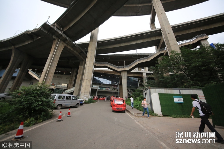 2018年5月29日,重慶,魔幻重慶又雙叒叕放大招!還有一個(gè)獨(dú)特的亮點(diǎn),重慶軌道交通3號線銅元局站,出口由一段長梯銜接上方立交橋和下方的路面,與全國最高城市立交橋蘇家壩立交組成了獨(dú)特風(fēng)景,許多游客專門趕來拍照。