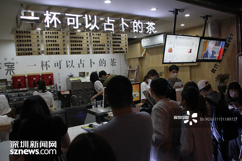 2018年4月21日,重慶,萬達(dá)廣場附近有一家新開業(yè)的網(wǎng)紅答案茶的冷飲店,這家答案茶冷飲店人氣異?;鸨?,門前已排起了兩條“長龍”。 |