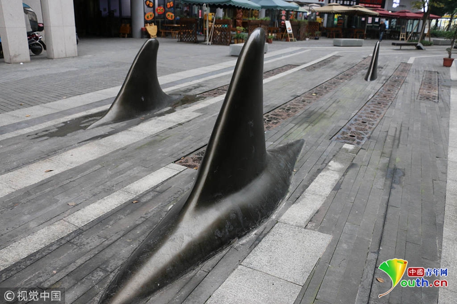 對(duì)于這種設(shè)計(jì),不少市民覺(jué)得比較精巧的,遠(yuǎn)遠(yuǎn)地望去,就好像在海面上露出魚(yú)鰭的一群鯊魚(yú),不僅可以防止被車(chē)輛占道,而且還有點(diǎn)裝飾的效果。