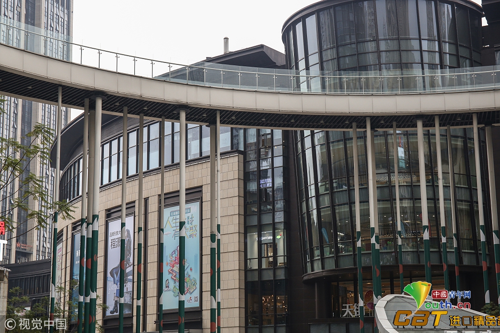 2017年3月16日,重慶,渝中區(qū)一棟大樓從22層架起兩座平行的天橋,連接對(duì)面的魁星樓廣場(chǎng)地面。圖片來(lái)源:視覺(jué)中國(guó) |