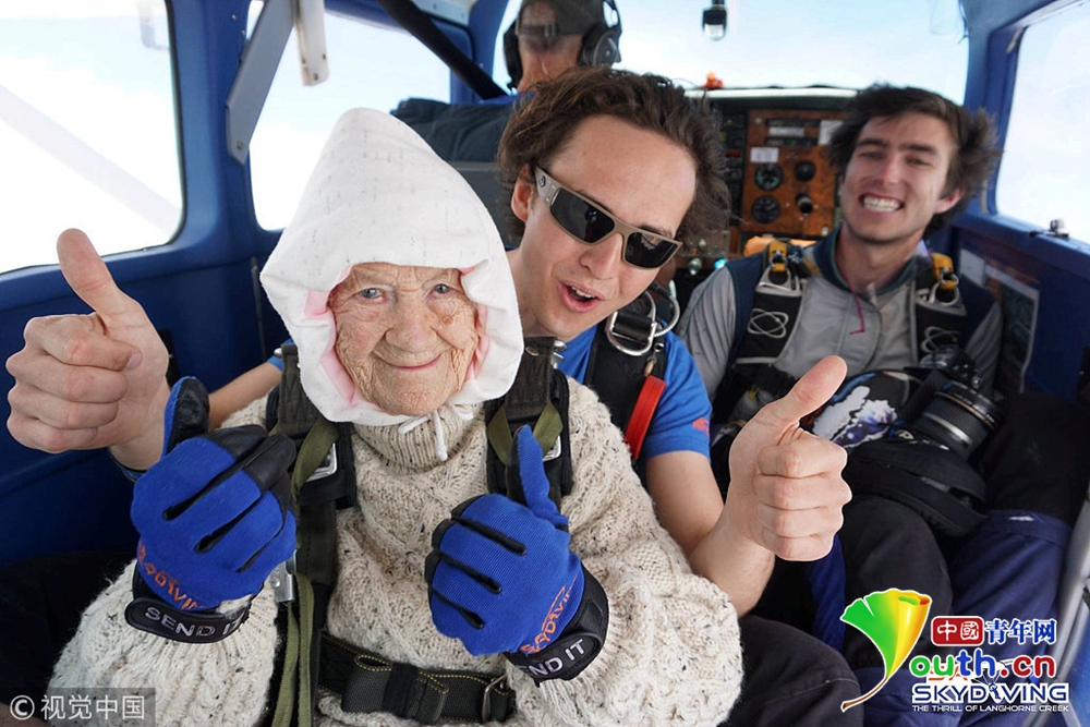 12月14日消息,澳大利亞一名102歲高齡的老奶奶日前刷新世界紀(jì)錄,她跟著教練從1萬4000英尺(約4300公尺)的高空一躍而下,成為全球最年長的跳傘玩家。