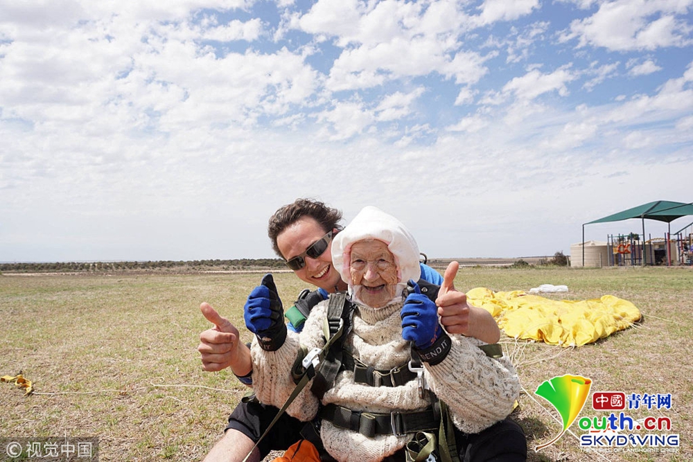 澳洲102歲奶奶玩高空跳傘 背后原因很暖心