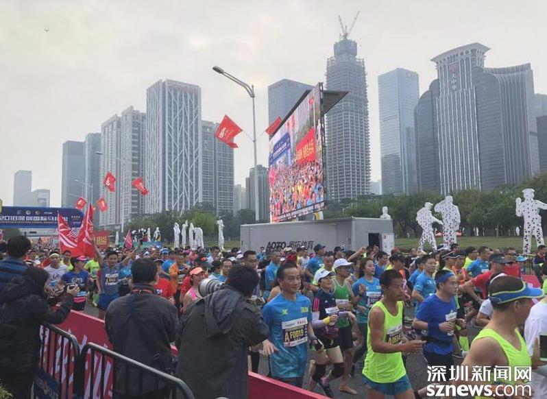 深圳新聞網2018年12月16日訊 2018年12月16日,2018深圳國際馬拉松在市民中心鳴槍開跑。30000名跑者將在深南大道展現真正的“深圳速度”。