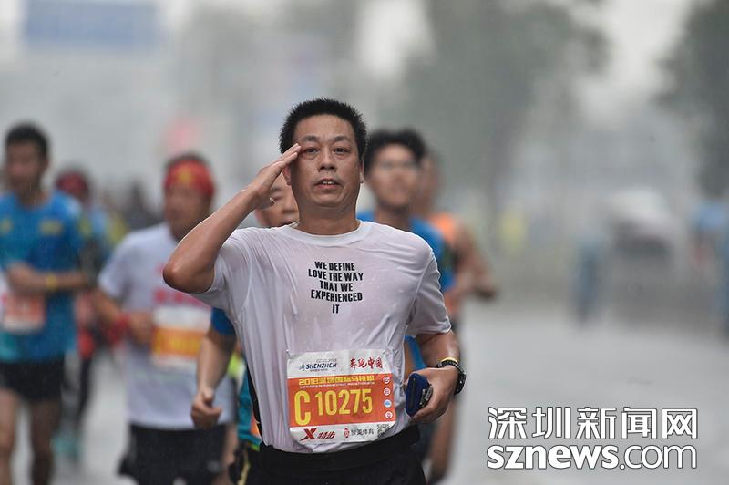 2018年12月16日,深圳國(guó)際馬拉松位于后海的折返點(diǎn),一名選手正在向終點(diǎn)沖刺。