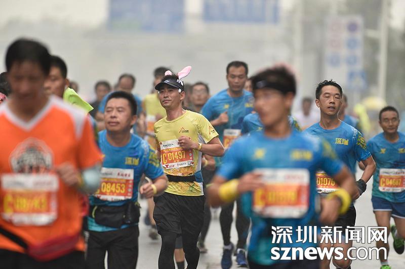 2018年12月16日,深圳國(guó)際馬拉松位于后海的折返點(diǎn),一名選手正在向終點(diǎn)沖刺。