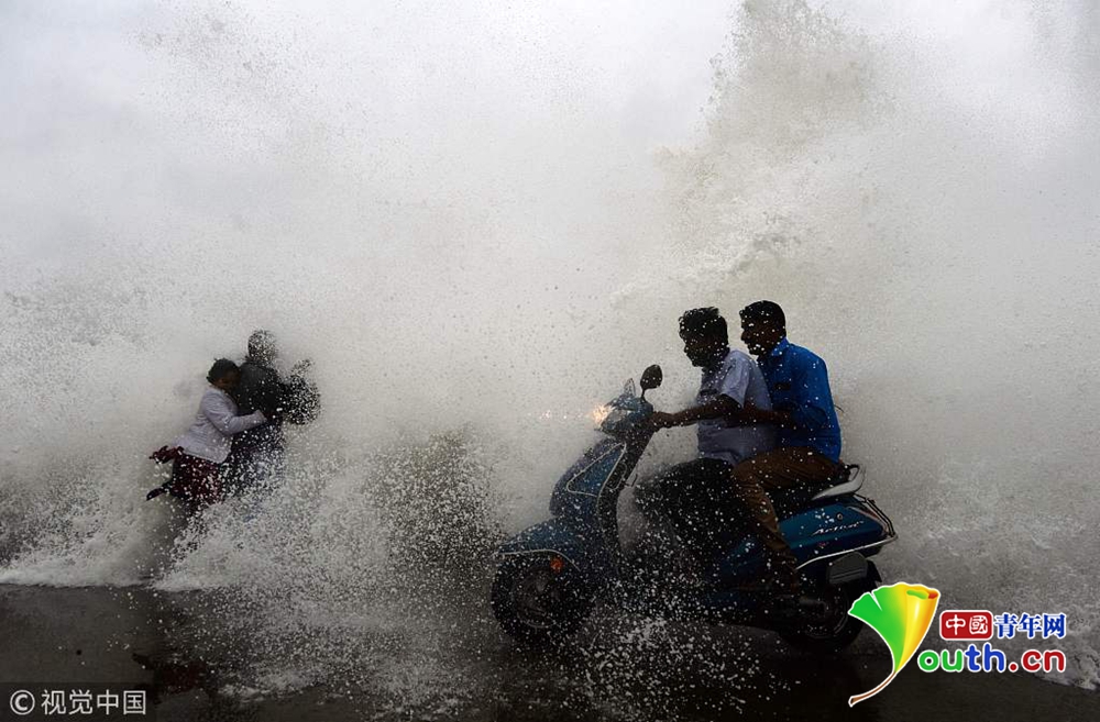 當?shù)貢r間2018年12月16日,印度欽奈,颶風“佩太”正向印度東海岸逼近,引發(fā)狂風巨浪。