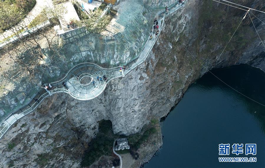 12月18日,游客在樂園內(nèi)的玻璃棧道上行走(無人機(jī)拍攝)。 當(dāng)日,“世茂精靈之城主題樂園奇幻親子嘉年華開幕暨上海公益基地揭牌儀式”在位于上海佘山國(guó)家旅游度假區(qū)的世茂精靈之城主題樂園一期(“深坑秘境”)正式啟動(dòng)。“深坑秘境”毗鄰上海佘山世茂洲際酒店,除了擁有俯瞰“深坑”的玻璃棧道外,還包括360度崖壁大擺錘、精靈樹屋、沙漠考古、夢(mèng)幻水域和蟲蟲世界等項(xiàng)目,帶來親子游玩新體驗(yàn)。 新華社記者 方喆 攝