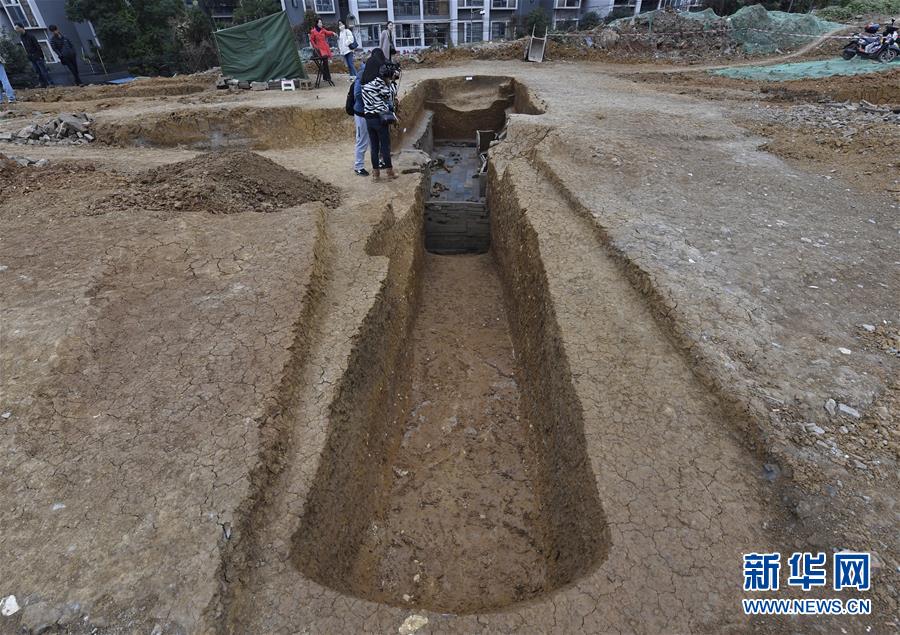 這是發(fā)掘的編號(hào)M3東漢墓墓道(11月15日攝)。