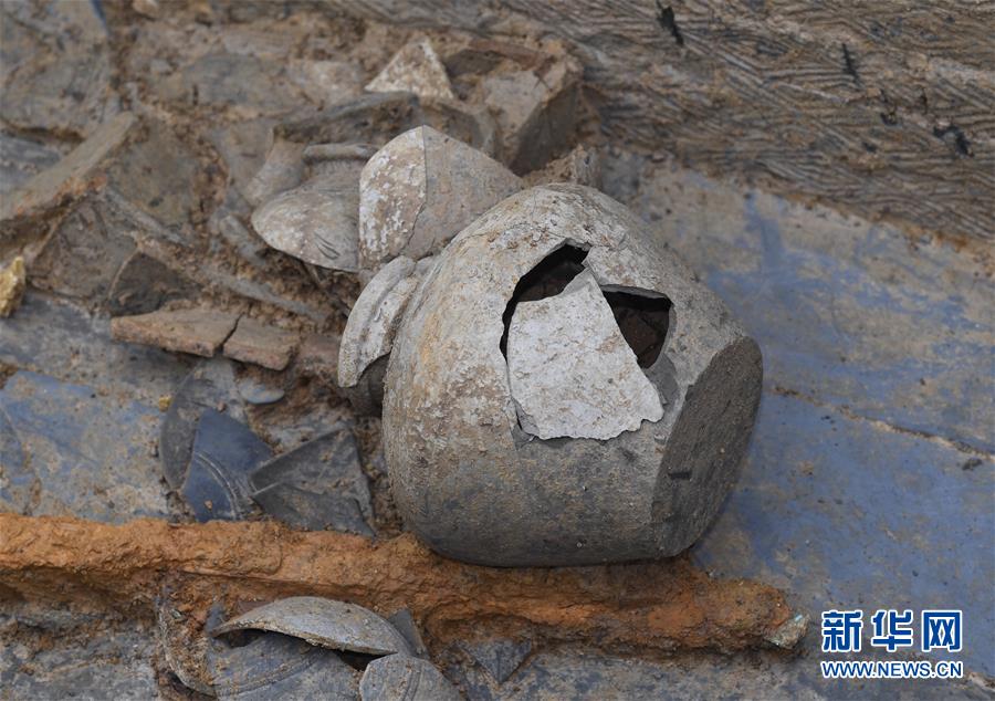 這是發(fā)掘的隨葬品(11月15日攝)。