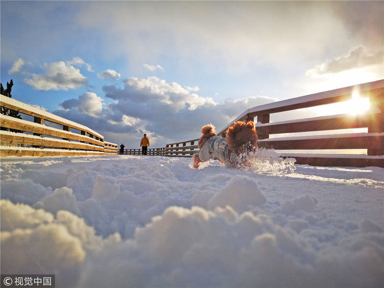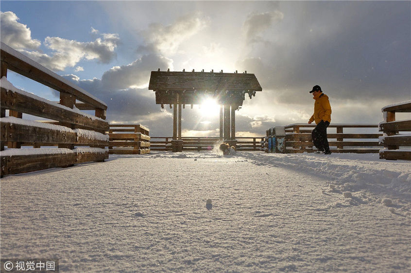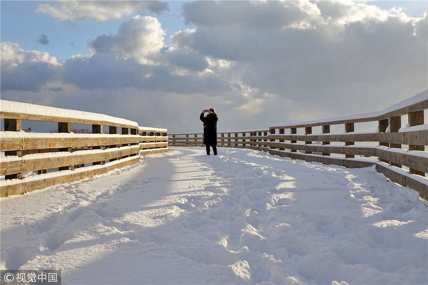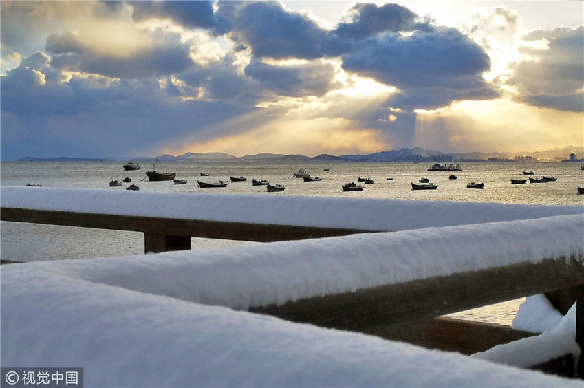 山東煙臺(tái)迎來初雪 獨(dú)特的海濱雪景美若童話