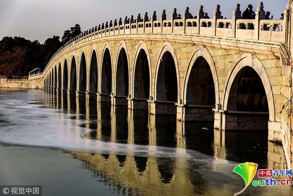 頤和園昆明湖已經(jīng)大面積結(jié)冰。