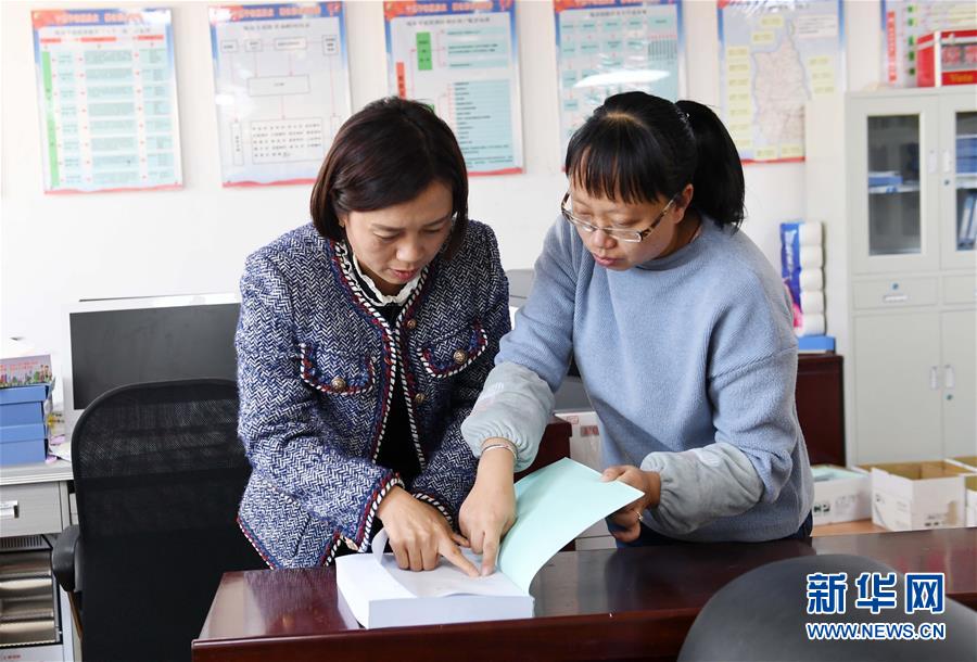 12月17日,陳應(yīng)蘭(左)和同事核對貧困群眾資料。 新華社記者 楊宗友 攝
